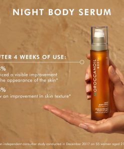 Firm. smooth and intensely nourish skin while you sleep with Night Body Serum. This highly concentrated serum is packed with high-performing ingredients that work together to firm and smooth the skin with every application. Its replenishing formula includes an antioxidant-rich blend of argan and tsubaki oils to address loss of firmness and moisture. Holy Basil extract to help protect skin from environmental stressors and smoothing Vitamin C ester to smooth and strengthen the skin for a more youthful. radiant appearance. Paraben-free. Mineral oil-free.